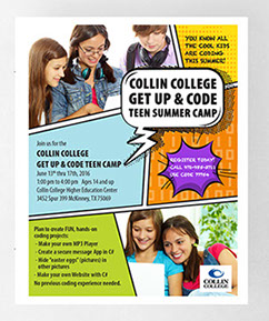 Marketing flyer for Collin College Teen Summer Camp Program.