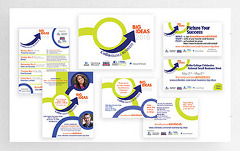 marketing mailers, brochures, postcards, flyers, posters, package design, promotional advertising, trade show graphics, banners, signage.